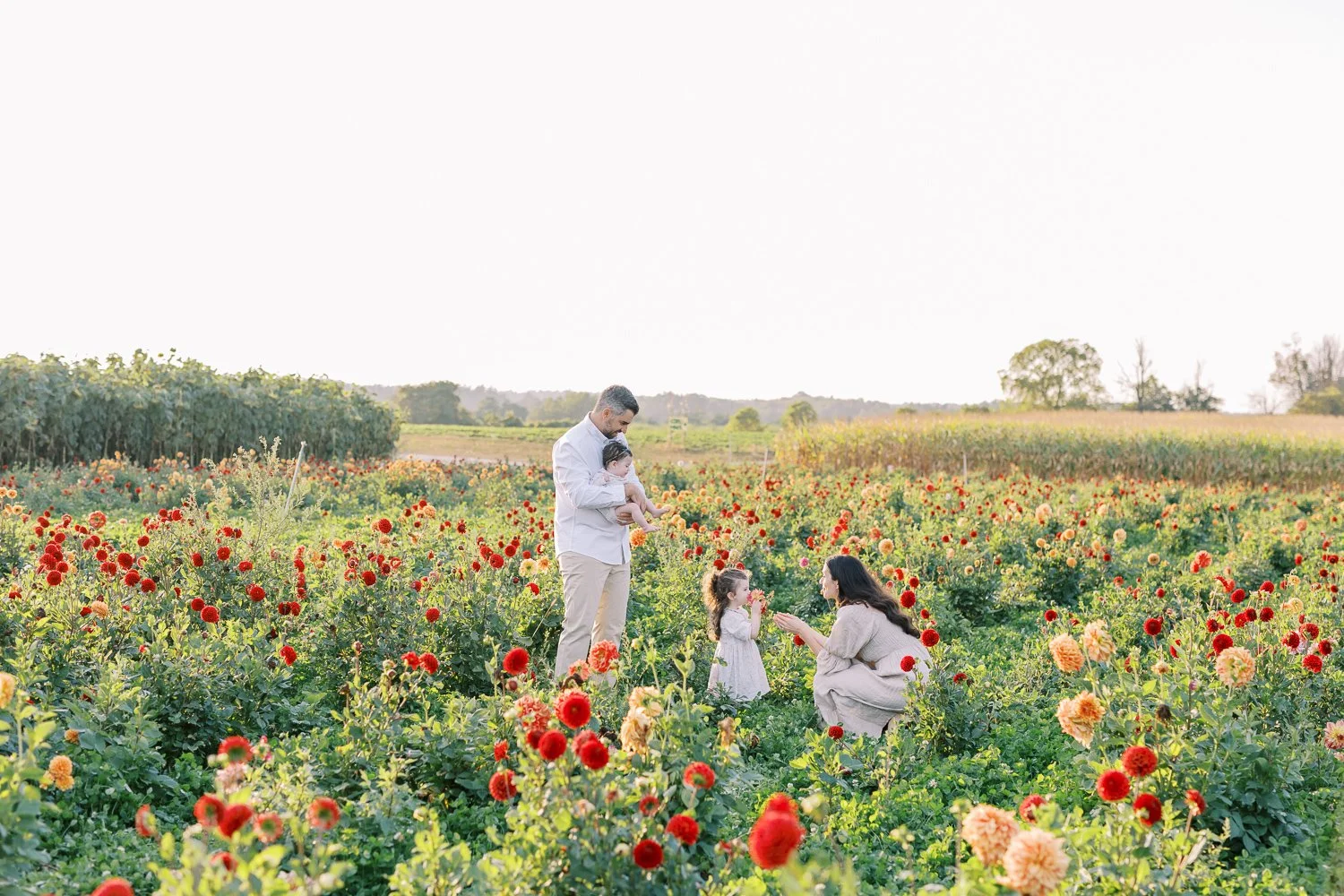 This beautiful gallery was taken last September at Andrewβs Scenic Acres. Dahlia session was one of our signature mini sessions. Itβs the last flower field session before we move on to Fall and Christmas. The field was gorgeously filled with vibrant colors of red, orange, yellow, purple, and pink. Adding in the golden light and surrounding greenery, and you get yourself the picture-perfect location for your family photos.